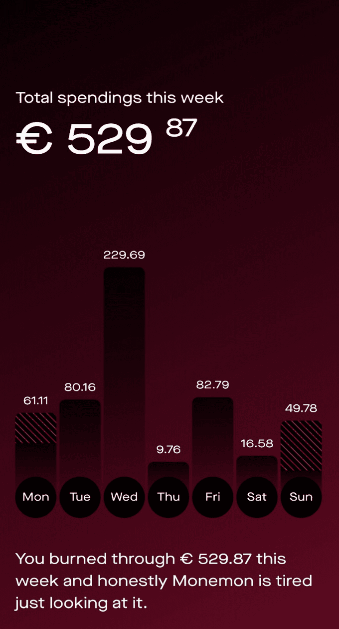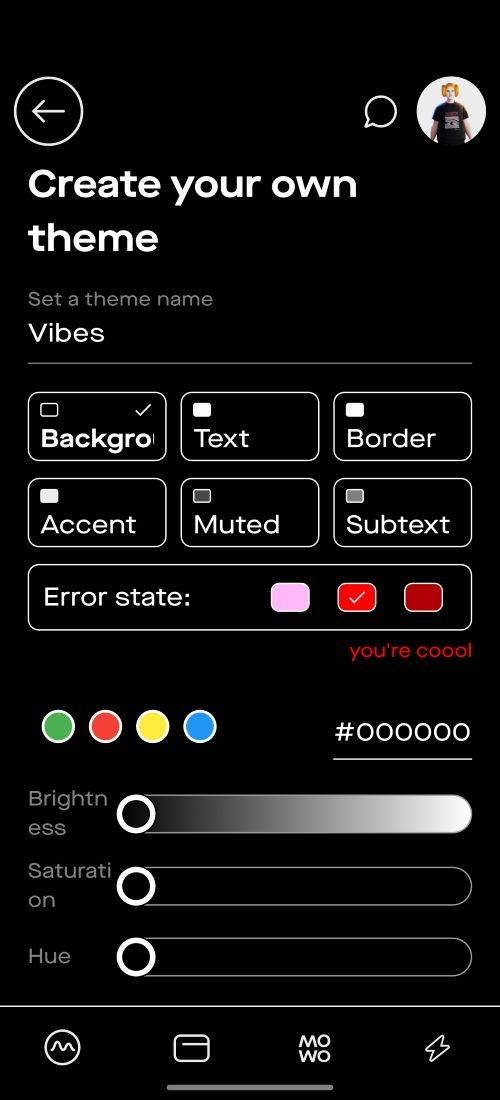 Style the app to match your mood, switching between different pre-set themes or creating your own. You are unique, so is your Monemon!